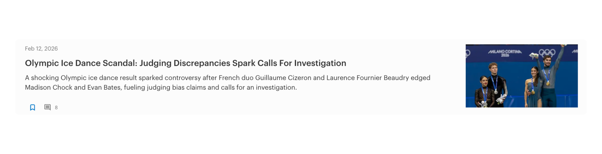 Selection of my published work from the Milano Cortina 2026 Olympics. My coverage ranged from investigative reporting to breaking news in figure skating. Click the icon to access each full article on Forbes.com.